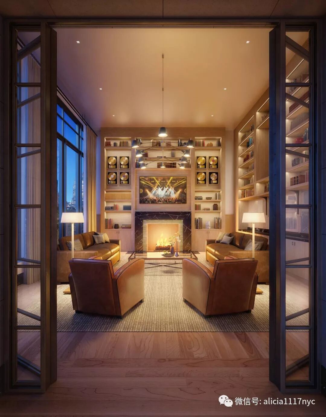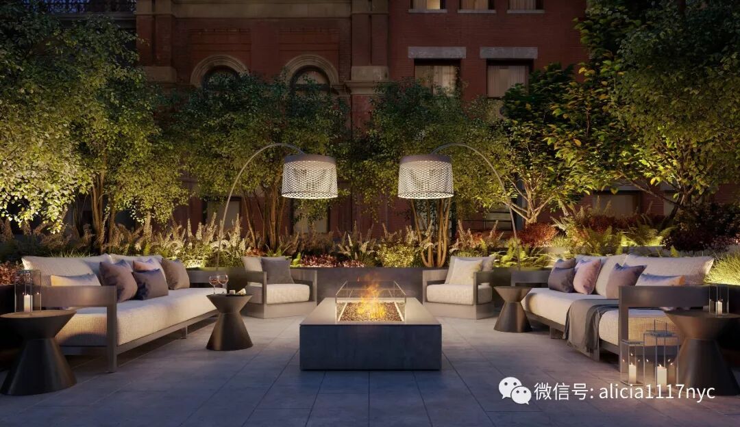 Tastemaker Studio Mellone设计 Park Row俱乐部 – 灵感来自镀金时代远洋班轮的舒适套房。俱乐部包括图书馆和放映室,休息室,台球,酒吧, 餐厅,游戏室,高尔夫模拟器和健身中心,65英尺的游泳池和瑜伽室。花园和餐厅露台拥有宽敞的室外空间,包含休息室、会客区、烧烤厨房、餐厅包间、自然怡人的游戏景观以及葱郁草坪。