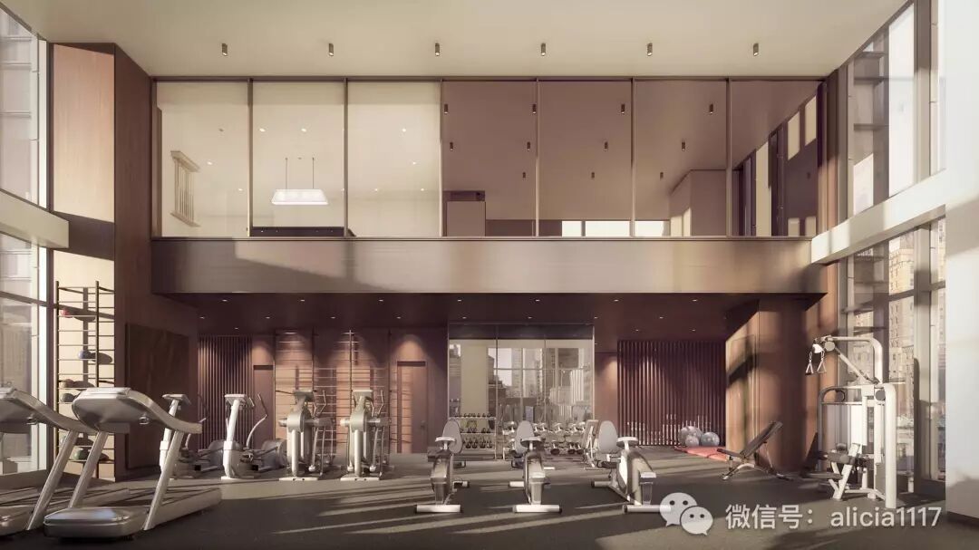 拥有双倍挑高空间的健身房,享有充足的自然光线。 儿童游戏室、台球室和高尔夫模拟器在健身房上方的空间,其采用橡木地板与胡桃木镶饰墙,塑造自然温馨的环境。