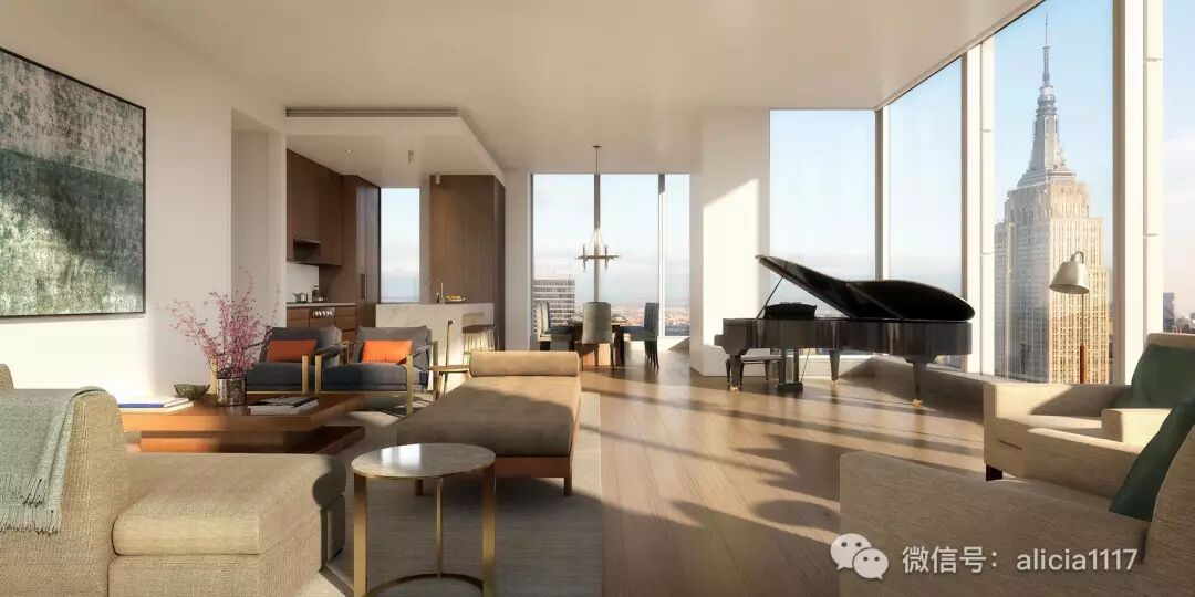 曾为新世贸中心设计的Handel Architects建筑事务所担任麦迪逊大厦的设计,离地面约46米以上是大楼的住宅部分,落地转角窗户,为住户带来了宽阔视野和独一无二的景观。