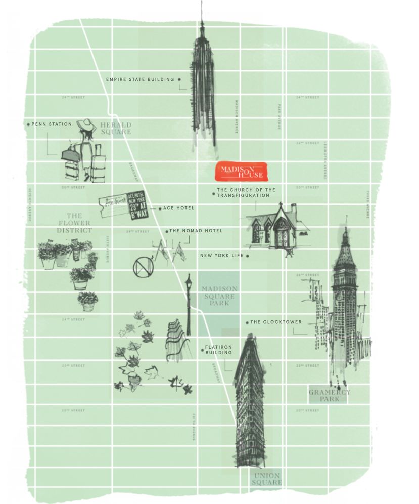 麦迪逊大厦(Madison House)地处纽约中城最热门的NoMad社区,于五大道和麦迪逊大道之间,紧邻帝国大厦、熨斗大厦、麦迪逊广场公园。