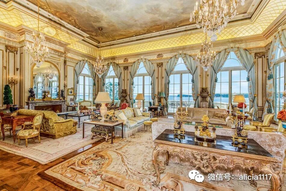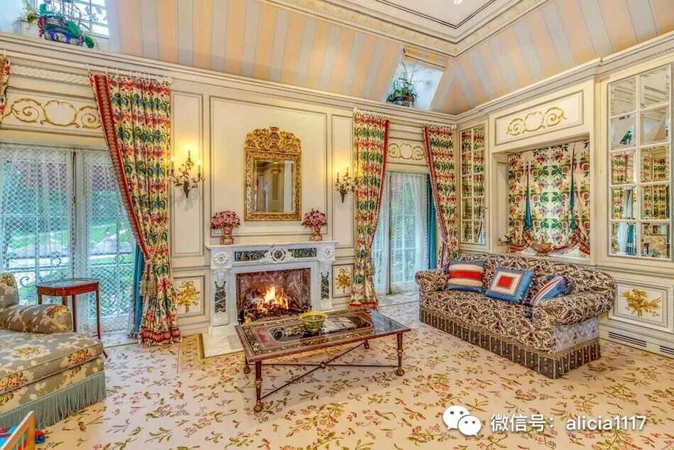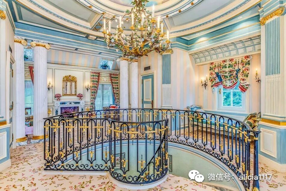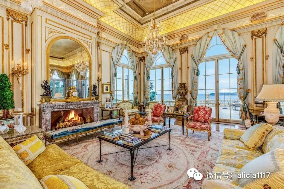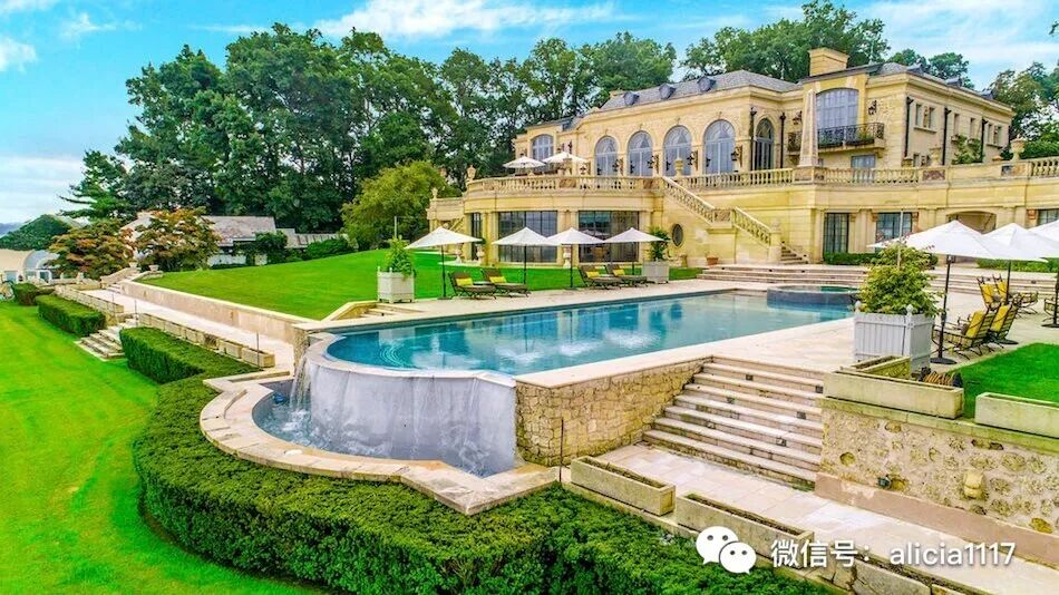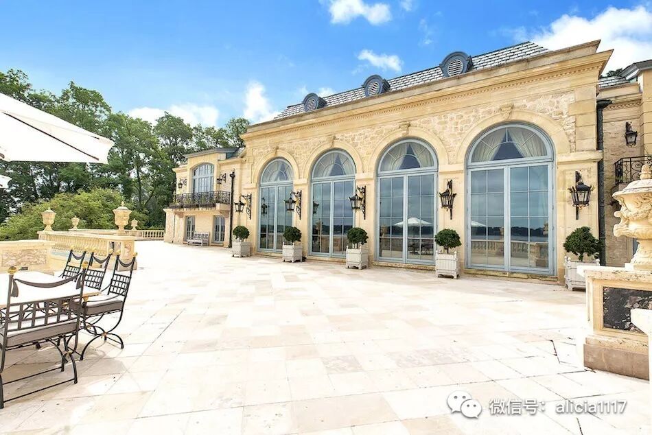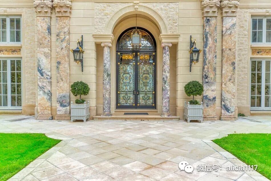 这栋法国石灰石府邸,圆柱采用的是法国采石场用来建造凡尔赛宫的剩余大理石。外墙复杂精细的手工雕刻,大部分是在现场完成,石板屋顶同样工艺精湛。