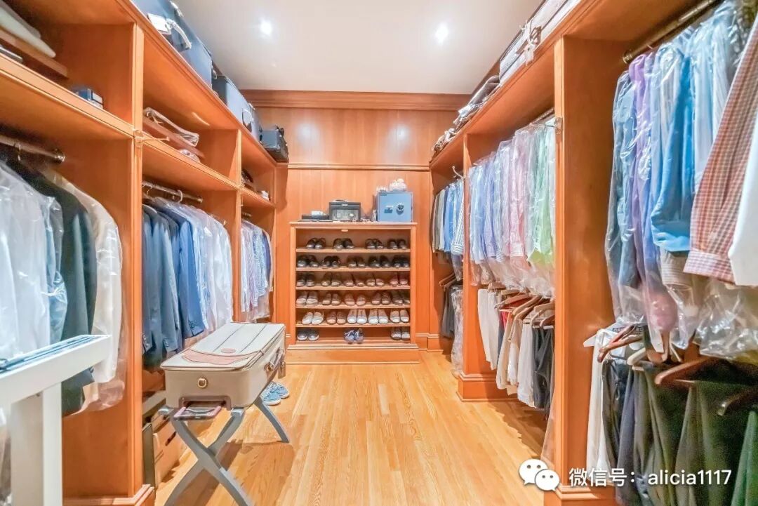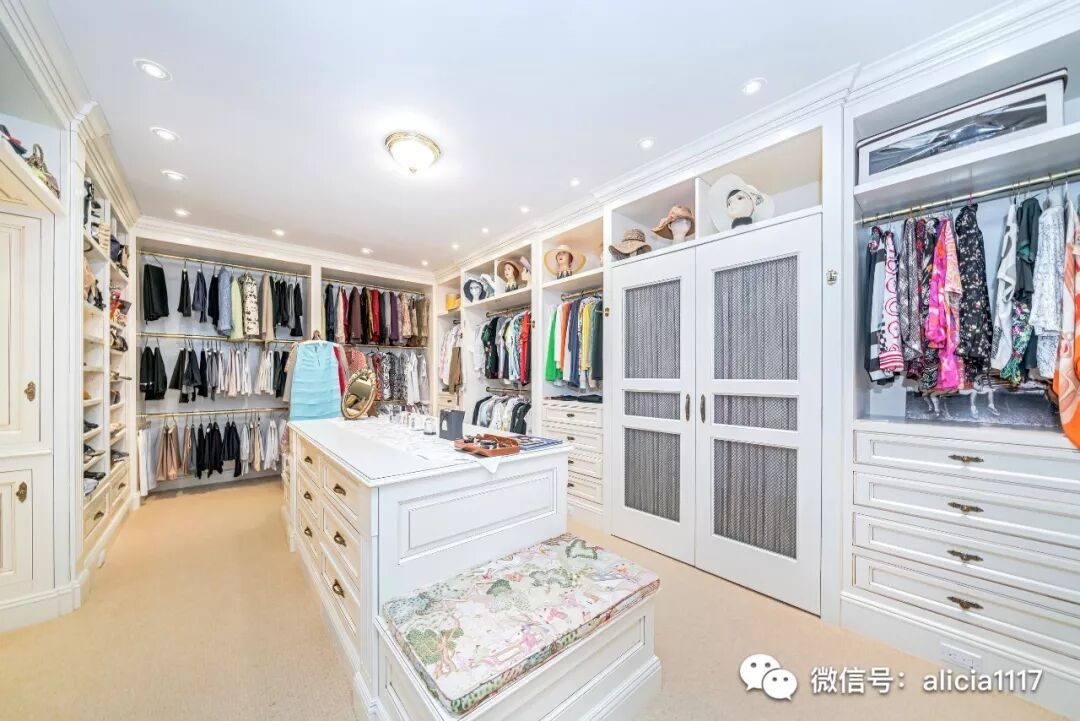 主卧两翼还配备了嵌入式衣帽间,更衣区和两个定制的步入式壁橱,其中一个还带有雅致的中央岛。