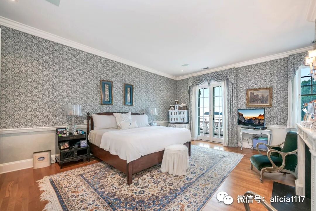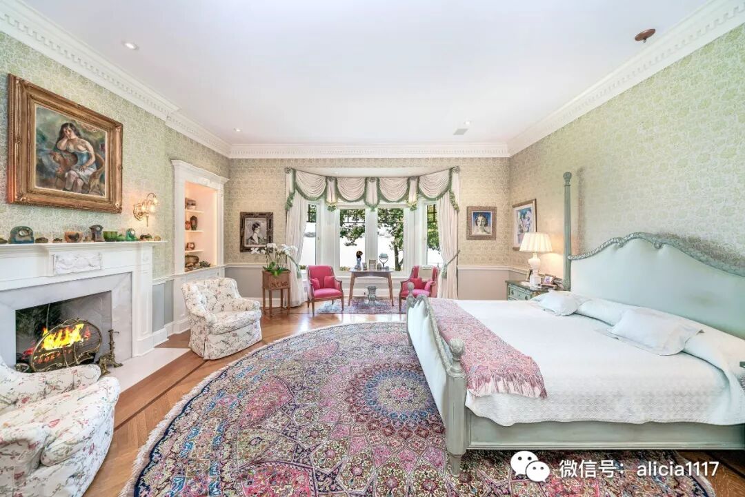 楼上的每扇窗户都可欣赏到壮丽的景色,楼上设有7间卧室,6个完整的浴室,大型游戏室,以及带完整浴缸、步入式衣橱、定制搁板、布艺和软垫墙壁、壁炉的独立主翼空间。