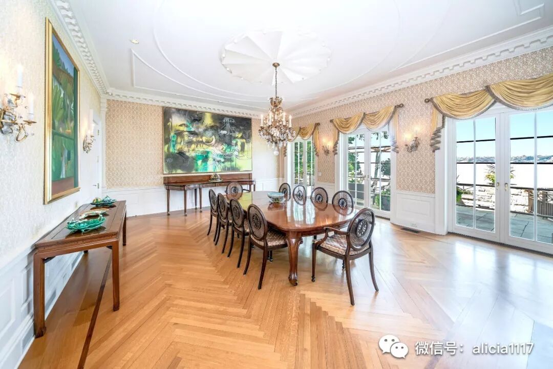 正餐厅设有进口的19世纪的壁炉,古董墙装置,水晶吊灯,定制造型的法式门,并可通往一个长石露台,能欣赏园景和海景.