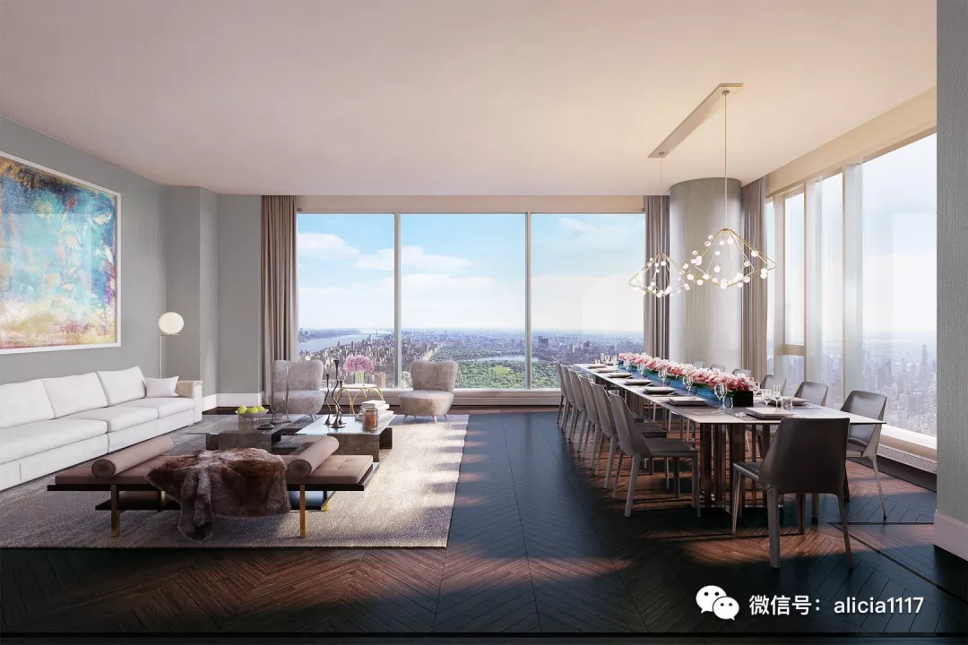 Central Park Tower全玻璃外墙,超大落地窗,最大限度让您全方位地将整个曼哈顿景色一览无余。