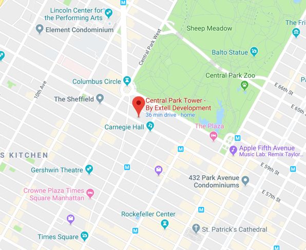 Central Park Tower地处纽约曼哈顿“钻石级”地段,坐落于被誉为“亿万富豪大道”的西57街,北邻中央公园,西靠哥伦布圆环。